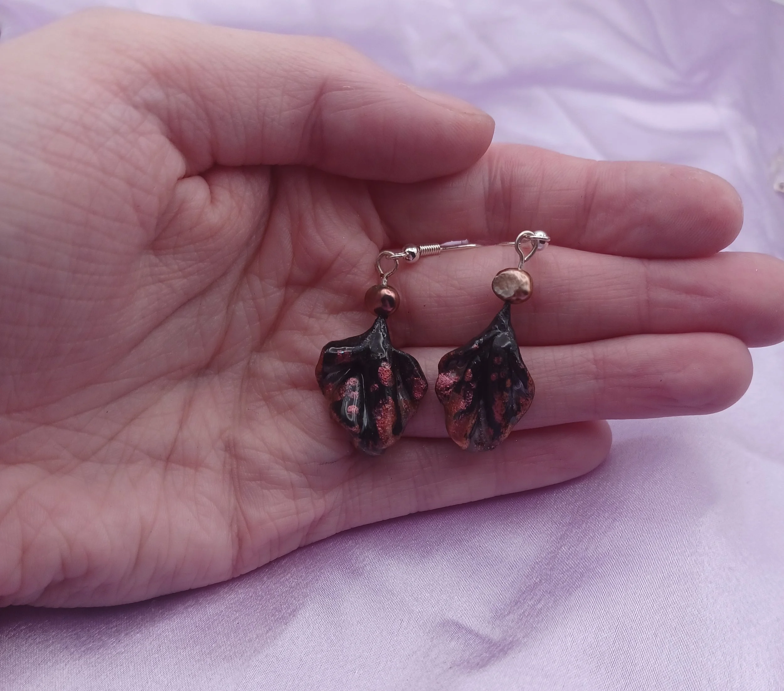 Made with polymer clay and red duo chrome , coated in resin for extra protection. These earrings are also hypoallergenic with silver earring hooks.