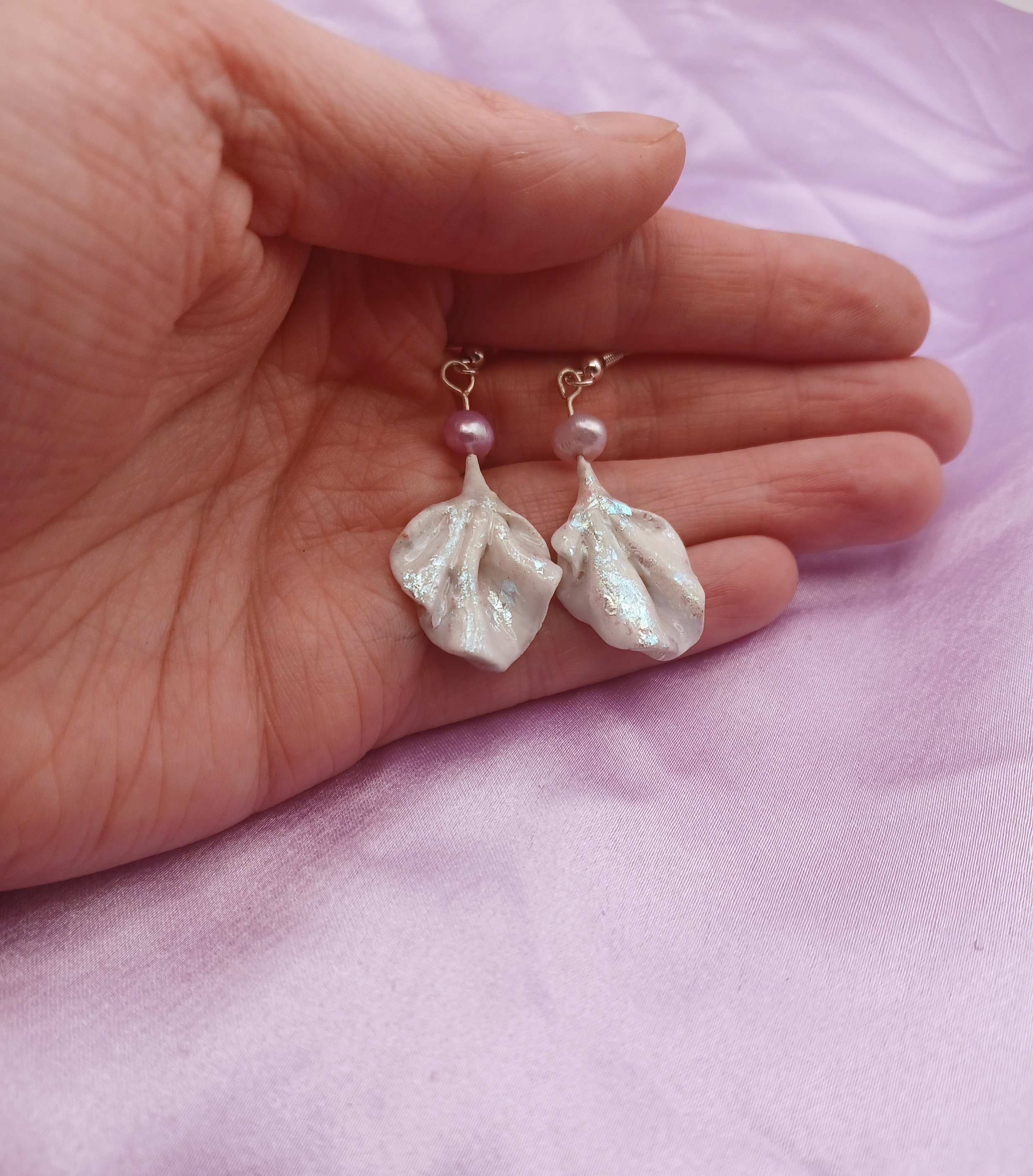 Made with polymer clay and lilac duo chrome , coated in resin for extra protection. These earrings are also hypoallergenic with silver earring hooks.