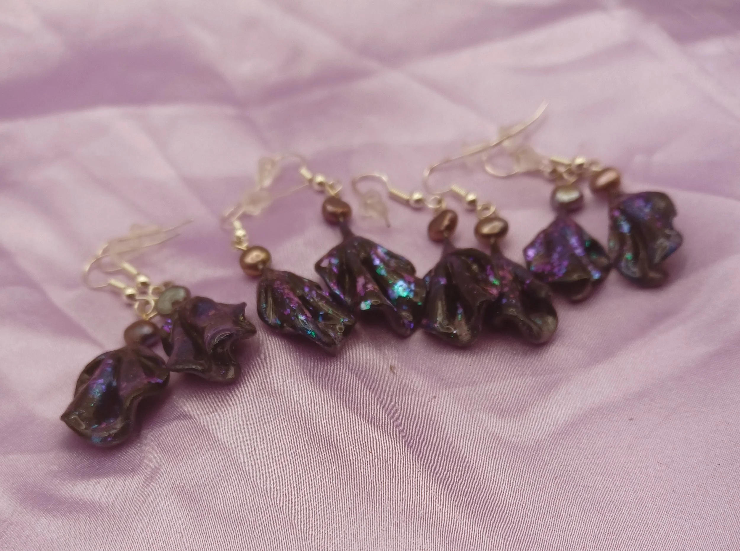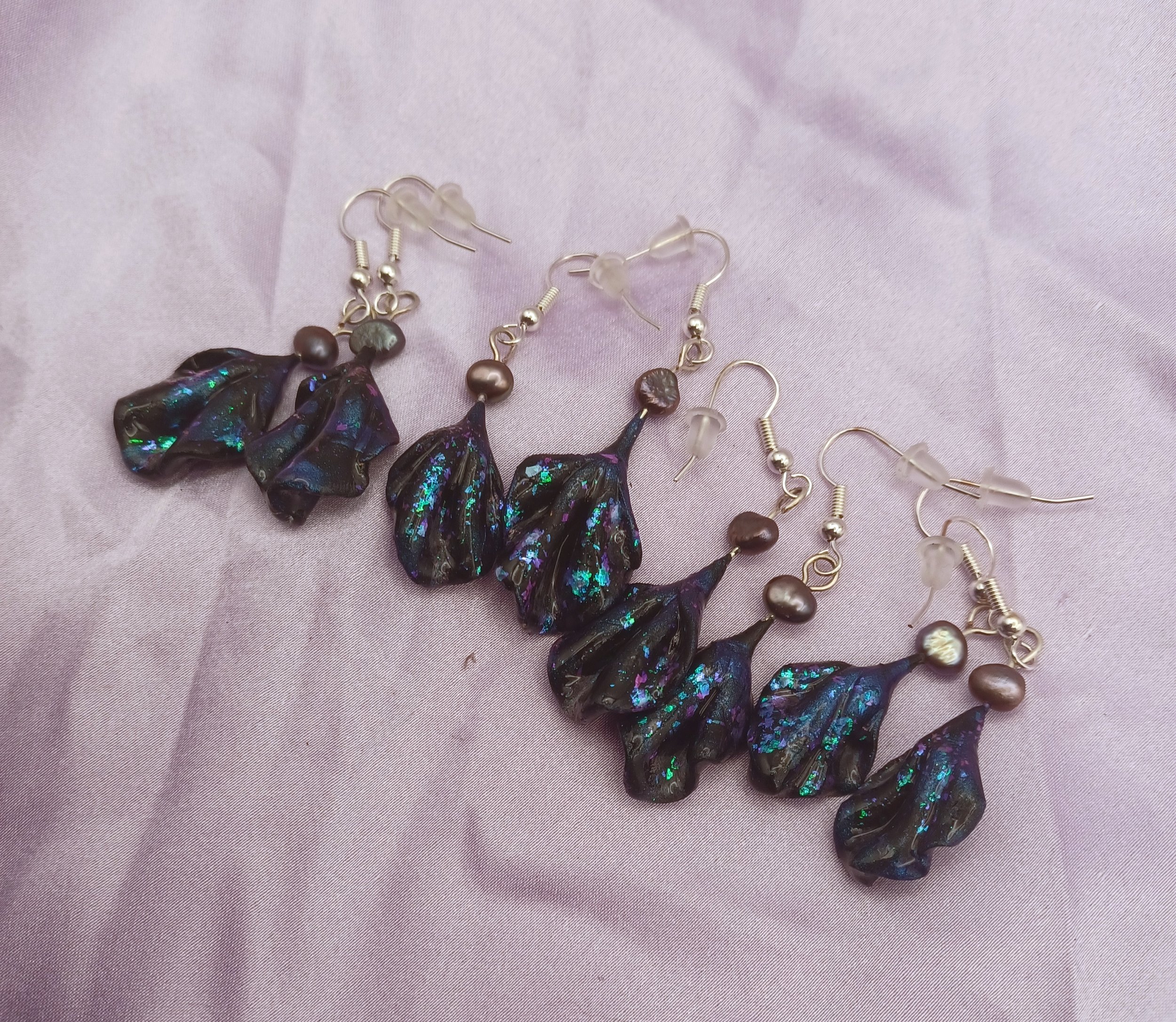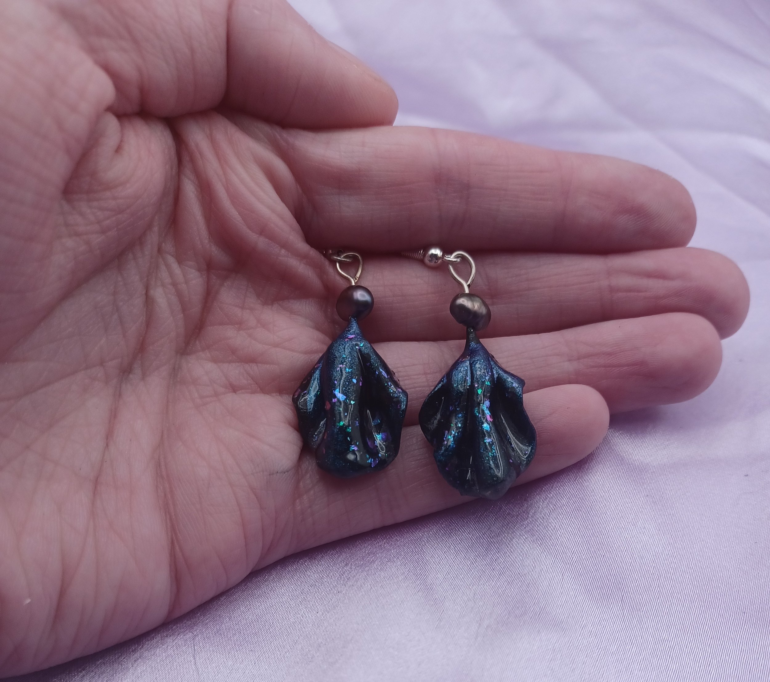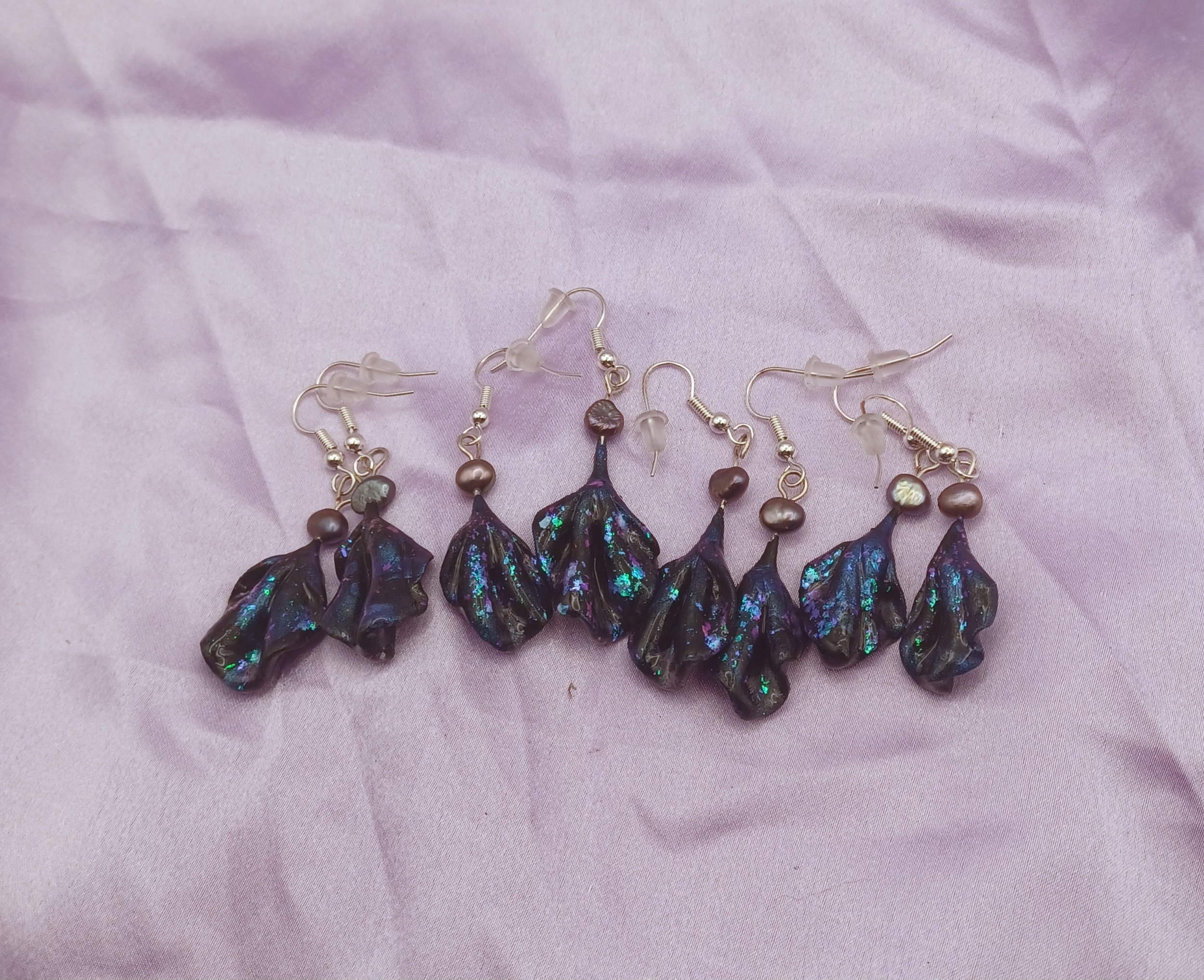 Made with polymer clay and blue duo chrome , coated in resin for extra protection. These earrings are also hypoallergenic with silver earring hooks.